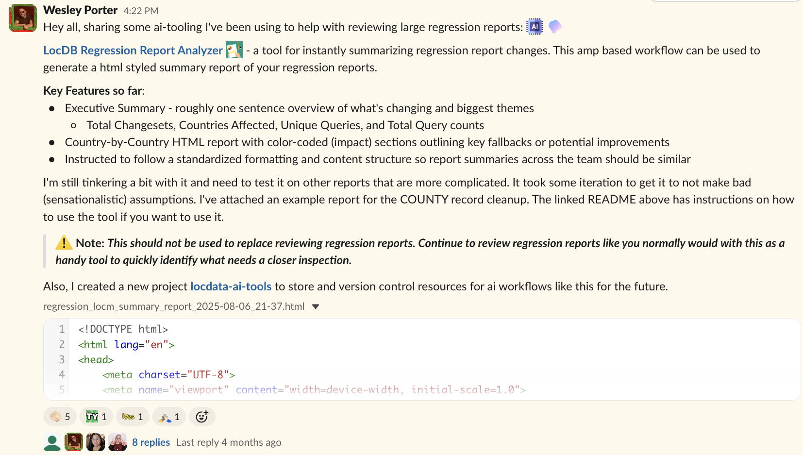 I built a workflow that takes a raw regression report CSV and generates a comprehensive HTML summary with: